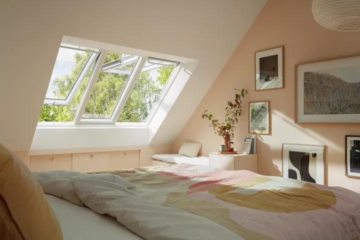 Regelmäßiges und richtiges Lüften unterstützt einen gesunden Schlaf im Schlafzimmer unter der Dachschräge.